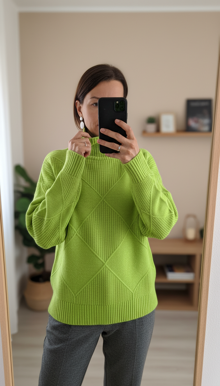 Пуловерът е супер мек и качествен. Цветът е ярък и стои страхотно – точно като на снимките. Много удобен за всекидневие, а материята не дразни кожата. Много съм доволна!